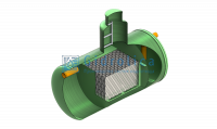 Длина резервуара — 2700 мм, диаметр — 1600 мм, что дает объем, равный 5 кубометров. Производительность этого бензомаслоотделителя — 10 л/с.